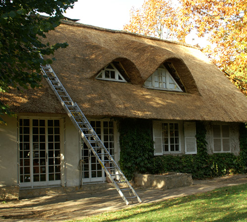 - L’entretien : afin de contrer ce phénomène naturel, le chaumier débarrasse la toiture des mousses à l’aide de sa batte et en profite pour resserrer le roseau sur ses liens. De ce fait, votre toiture, ayant retrouvée son apparence originelle, peut bénéficier d’un tiers de vie supplémentaire.